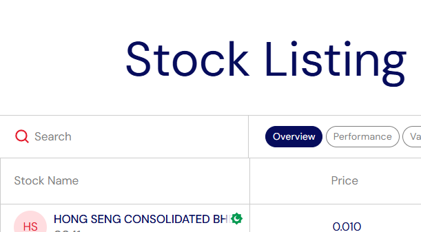 2.0 在 Stock Listing <Search> 输入公司代号 <5398>。