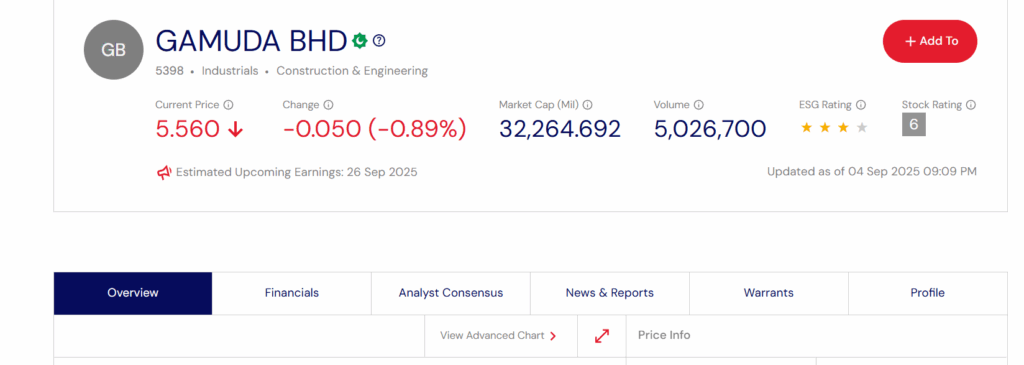 1.0 我就用 GAMUDA 5398 来示范。到 Bursa Marketplace 网站,<Menu> <Stock>,