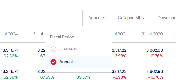 5.0 <Statements>里 有 <Income Statement> 选 Annual,然后找 Net income。