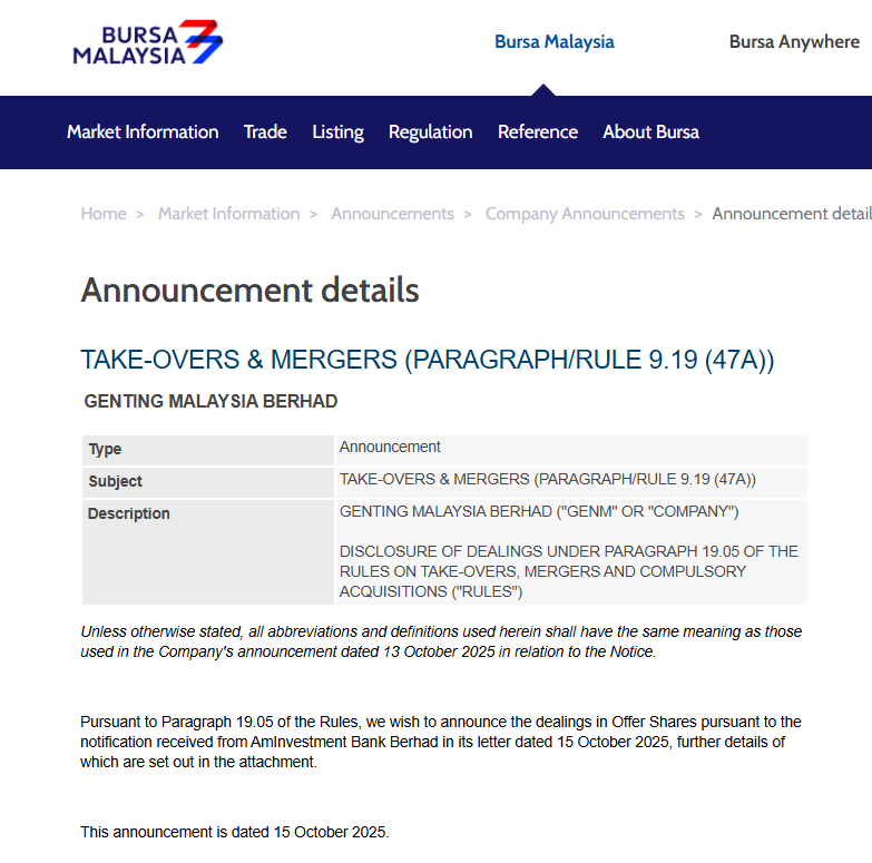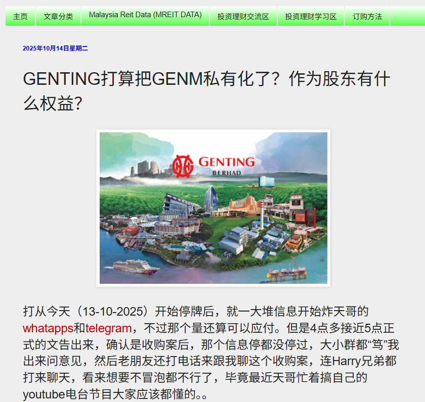 2025.10.15 GENM 4715 跟股票交易提呈了购买 Minority 股份计划,以每股 2.35 的价格献购,计划私营化,注入 GENTING 3182。有感觉到市场上持有 GENM 的小股东们都不是很乐意出让,这是为什么呢?