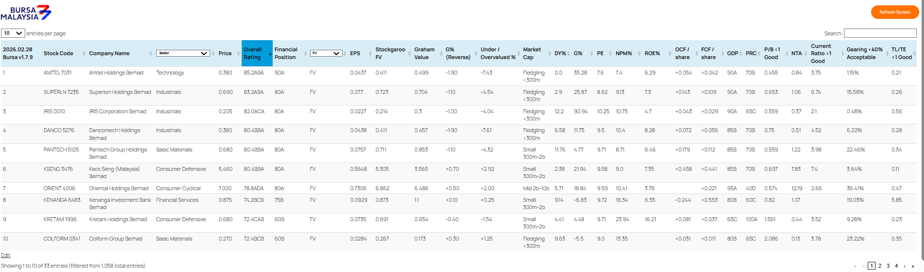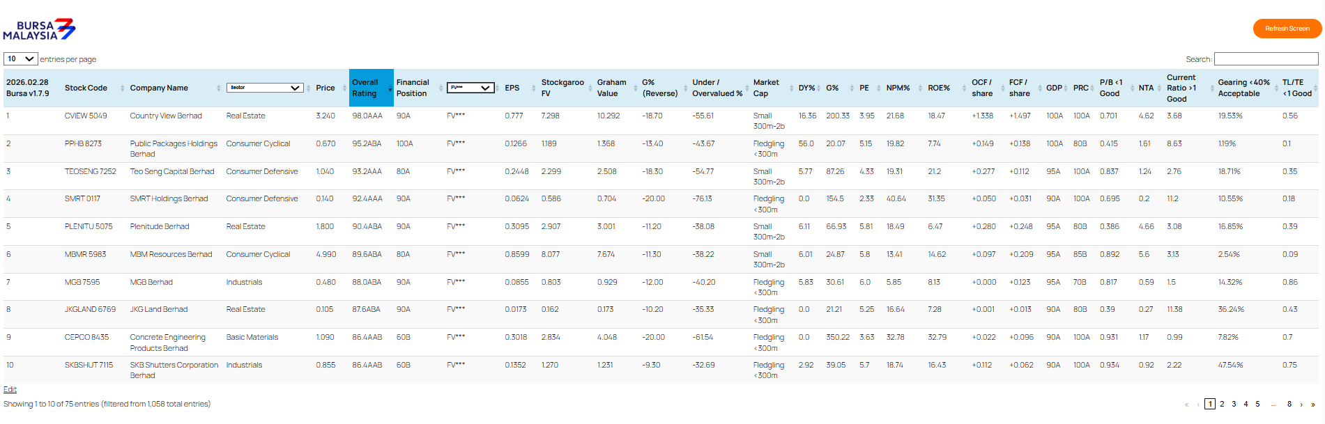 | 4 | SMRT 0117 SMRT Holdings Berhad Consumer Defensive | +21/35 (60%)🚫 | Deficit🚫 | 45D🚫 | ||