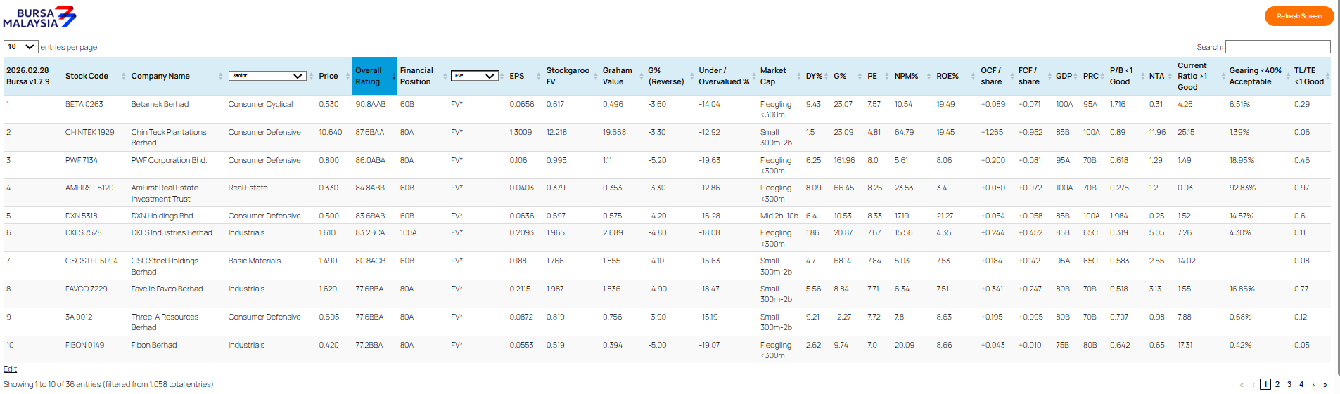 | 1 | BETA 0263 Betamek Berhad Consumer Cyclical | 60🚫 | ||||